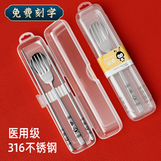 沃德百惠卡皮巴拉叉勺筷套装316不锈钢学生餐具盒子三四件套