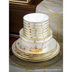 餐具中式饭菜景德镇骨瓷描金子碗碟套碗盘套装欧式圆形家用陶瓷器