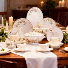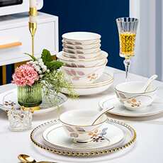 采购产品景德镇骨盘,骨瓷器餐具套装,金边瓷碗,斯堪的纳维亚家