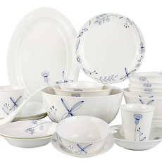 红叶瓷器官方店碗碟套装家用景德镇青花瓷56头菊园餐具套中式