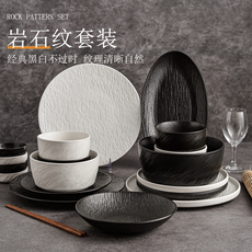 DXC创意碗碟瓷器 家用 4人套装日式个性陶瓷碗盘餐具组合送礼简约