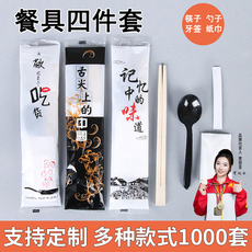 磨砂透明一次性筷子外卖筷子餐具四合一筷子筷勺子牙签纸巾1000套