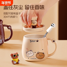 小熊马克杯陶瓷早餐咖啡喝水杯子带盖勺家用男女生可爱情侣办公室