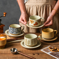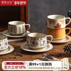 舍里高级感复古咖啡杯碟套装创意粗陶拉花杯子家用高档精致马克杯
