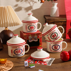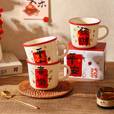 舍里喜庆带盖马克杯家用高颜值早餐杯咖啡杯办公室喝水杯子伴手礼