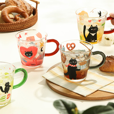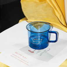 蓝莲花玻璃杯子水杯牛奶杯家用耐高温高硼硅可加热可爱猫咪马克杯