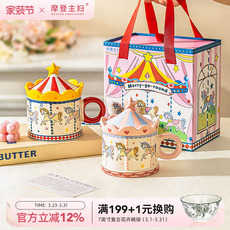 摩登主妇旋转木马马克杯带盖水杯家用生日礼物杯子伴手礼女咖啡杯