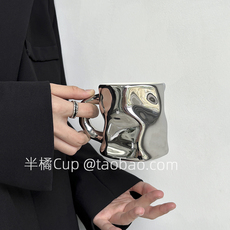半橘Cup 高级感银箔色不规则扭扭马克杯ins风陶瓷杯情侣水杯礼物