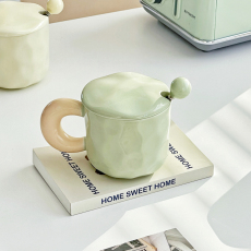 手捏撞色陶瓷杯家用喝水马克杯带盖勺高颜值办公室早餐情侣水杯子