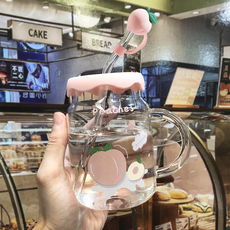 卡通kitty可爱玻璃杯把手杯大容量水杯马克杯咖啡杯牛奶果汁杯子