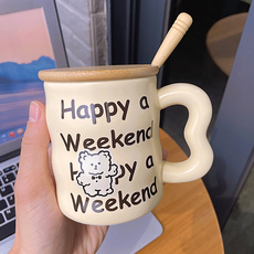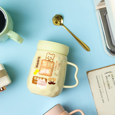 ins杯子女陶瓷马克杯带盖勺高颜值可爱办公室早餐咖啡喝水杯家用