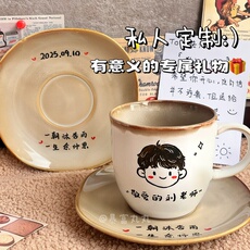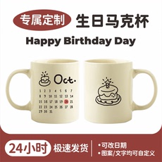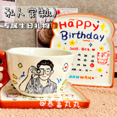 原创手绘定制!生日杯子盘子套装礼品礼物水杯diy陶瓷马克杯碟盘