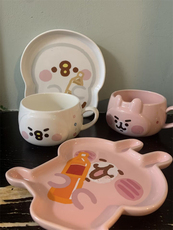 北欧ins高颜值马克杯家用大容量水杯陶瓷情侣牛奶杯卡通早餐杯子