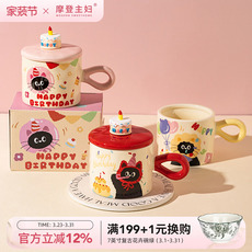 创意呆萌猫咪马克杯手绘陶瓷杯男女生日礼物家用水杯早餐杯咖啡杯