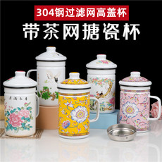 珐琅搪瓷杯304不锈钢带过滤网高盖杯漏网茶杯马克杯老式茶缸水杯
