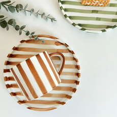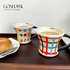 北欧中古马克杯手绘条纹咖啡杯高颜值水杯复古创意精致陶瓷杯子