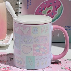 舍里可爱陶瓷马克杯带盖大肚杯高颜值喝水杯子女咖啡杯礼物伴手礼
