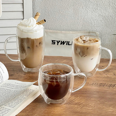 创意几何英文图案玻璃杯透明带把手高硼硅玻璃水杯冰咖啡杯马克杯