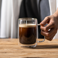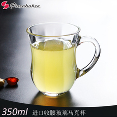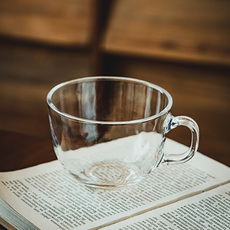 吉田成器透明玻璃杯早餐杯咖啡杯马克杯带手柄玻璃杯子大肚麦片杯
