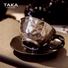 新骨瓷浮雕金鱼陶瓷马克杯手绘高颜值咖啡杯碟实用礼物结婚伴手礼