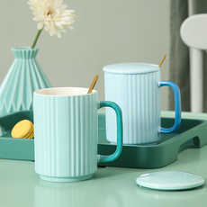 nosin诺轩ins田园陶瓷马克杯带盖勺水杯轻奢女家用杯子男简约创意