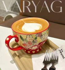 釉下彩兔个吉利手绘陶瓷杯早餐杯大容量杯子女燕麦杯马克杯咖啡杯