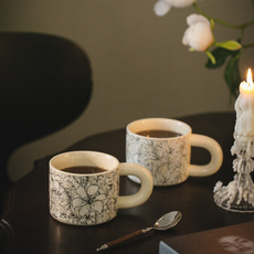 wpc马克杯简约花卉印花小清新设计高颜值瓷器餐具家用水杯早餐杯