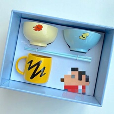 现货蜡笔小新陶瓷餐具套装早餐杯马克杯碗筷组合盘子儿童餐具套装