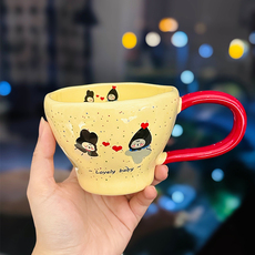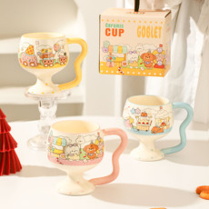 手绘陶瓷杯子马克杯高脚杯高颜值喝水杯燕麦早餐杯暖手杯家用带盖