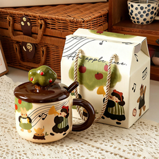 悠瓷 创意手绘马克杯陶瓷杯子高颜值水杯家用咖啡杯办公室带盖勺