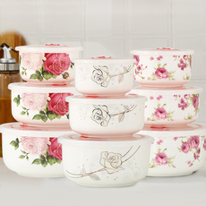 陶瓷泡面碗带盖保鲜碗饭盒学生便当盒大号方便面碗套装食堂打饭碗