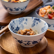 肆月中式花卉陶瓷面碗家用高颜值釉下彩汤碗大号饭碗菜盘蘸碟餐具