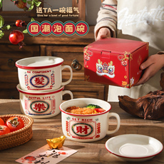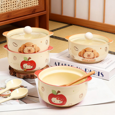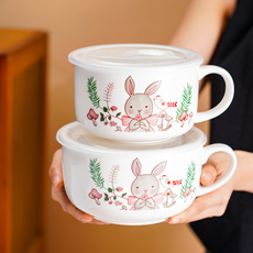 陶瓷泡面碗带盖学生宿舍卡通泡面杯带把手食堂带饭便当碗密封饭盒