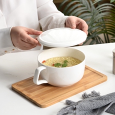 陶瓷泡面碗带盖简约大容量上班家用宿舍学生可微波带手柄便当盒