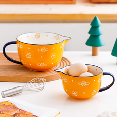 ezicok搅拌碗陶瓷打蛋碗尖嘴引流杯烘焙面糊碗家用釉下彩带手柄碗