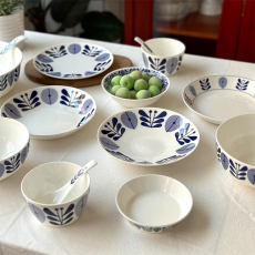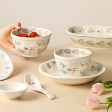 蓝莲花家居茉茉兔碗郁金香瓷碗家用陶瓷盘饭碗盘子漂亮米饭碗餐具
