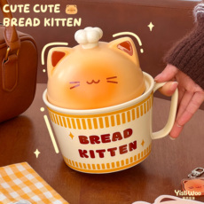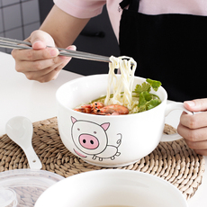 可爱泡面碗陶瓷带盖日式大号学生宿舍少女心大碗双耳汤碗家用单个