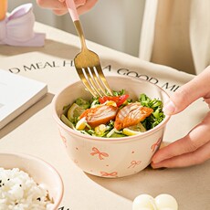 高颜值蝴蝶结ins餐具陶瓷下彩饭碗甜品家用情侣少女沙拉碗