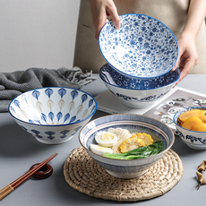 日式陶瓷釉下彩拉面碗斗笠碗高脚碗沙拉碗大号圆碗装菜碗汤碗商用