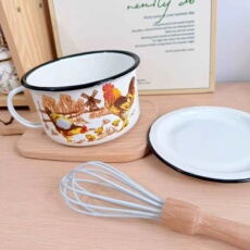 1.2L搪瓷快餐杯大公鸡带盖子打饭碗加厚珐琅搪瓷泡面碗食堂打饭缸