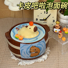 可爱卡通水豚泡面碗网红卡皮巴拉学生宿舍大容量饭碗有盖陶瓷碗