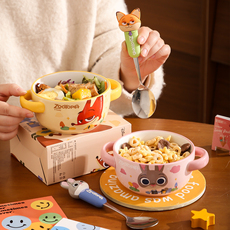 疯狂动物城陶瓷双耳碗高颜值宿舍学生早餐燕麦片碗女可爱儿童小碗