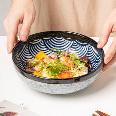日式内螺纹窑变陶瓷大菜碗餐厅复古面碗沙拉碗甜品碗家用餐具大号