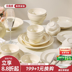 巷子尾〖芸黄餐具套装〗日式碗碟套装家用陶瓷碗盘复古乔迁碗具