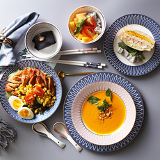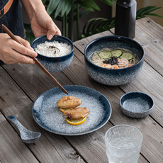 日式窑变碗碟套装家用复古陶瓷餐具酒店菜盘子米饭碗组合家用鱼盘