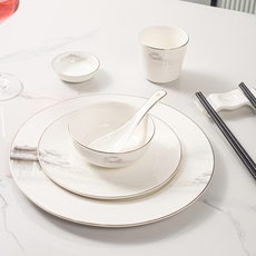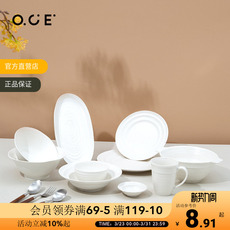 OCE简约中式餐具套装白色陶瓷碗碟饭碗汤碗菜盘水杯家用组合餐具