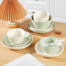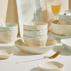 顺祥陶瓷奶油风碗碟套装家用高颜值碗盘筷饭碗乔迁新居餐具礼盒装