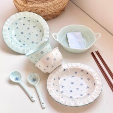 陶瓷碗碟套装家用汤面碗2025新款清新盘子菜盘创意碗盘釉下彩餐具