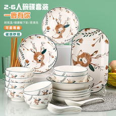可爱陶瓷碗碟套装一人食餐具情侣碗盘家用米饭碗女生高颜值儿童碗