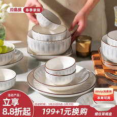 顺祥陶瓷碗碟套装家用简约现代饭碗餐具轻奢盘子纯白面碗汤碗金